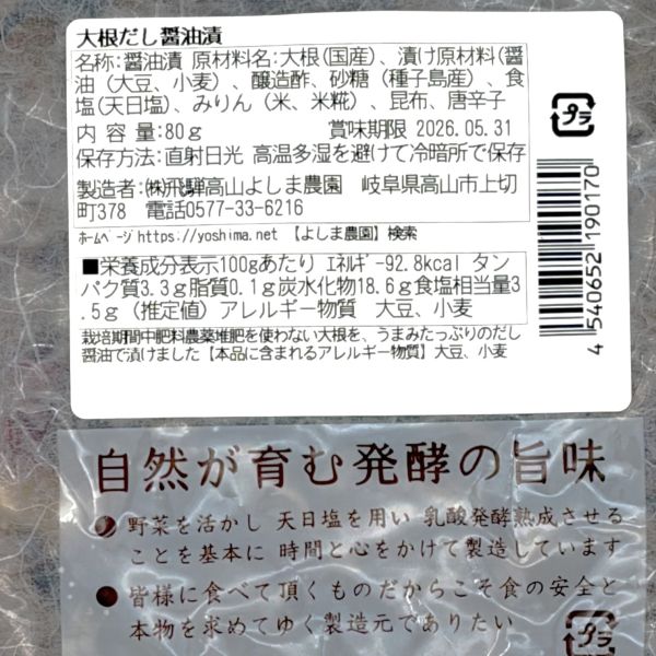 無農薬無肥料の大根醤油漬け