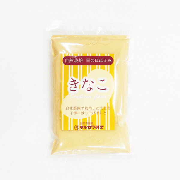 農薬・肥料を一切使用しない、マルカワみその自社農園で育てた自然栽培大豆をきなこに仕上げました。