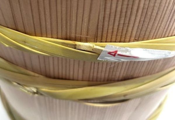 また、本体に巻かれた竹製タガについて、竹の繊維に沿った割れがあるものは本来、正規品(通常価格)にて販売しておりますが、今回は訳あり品(特別価格)としての販売を行っております。